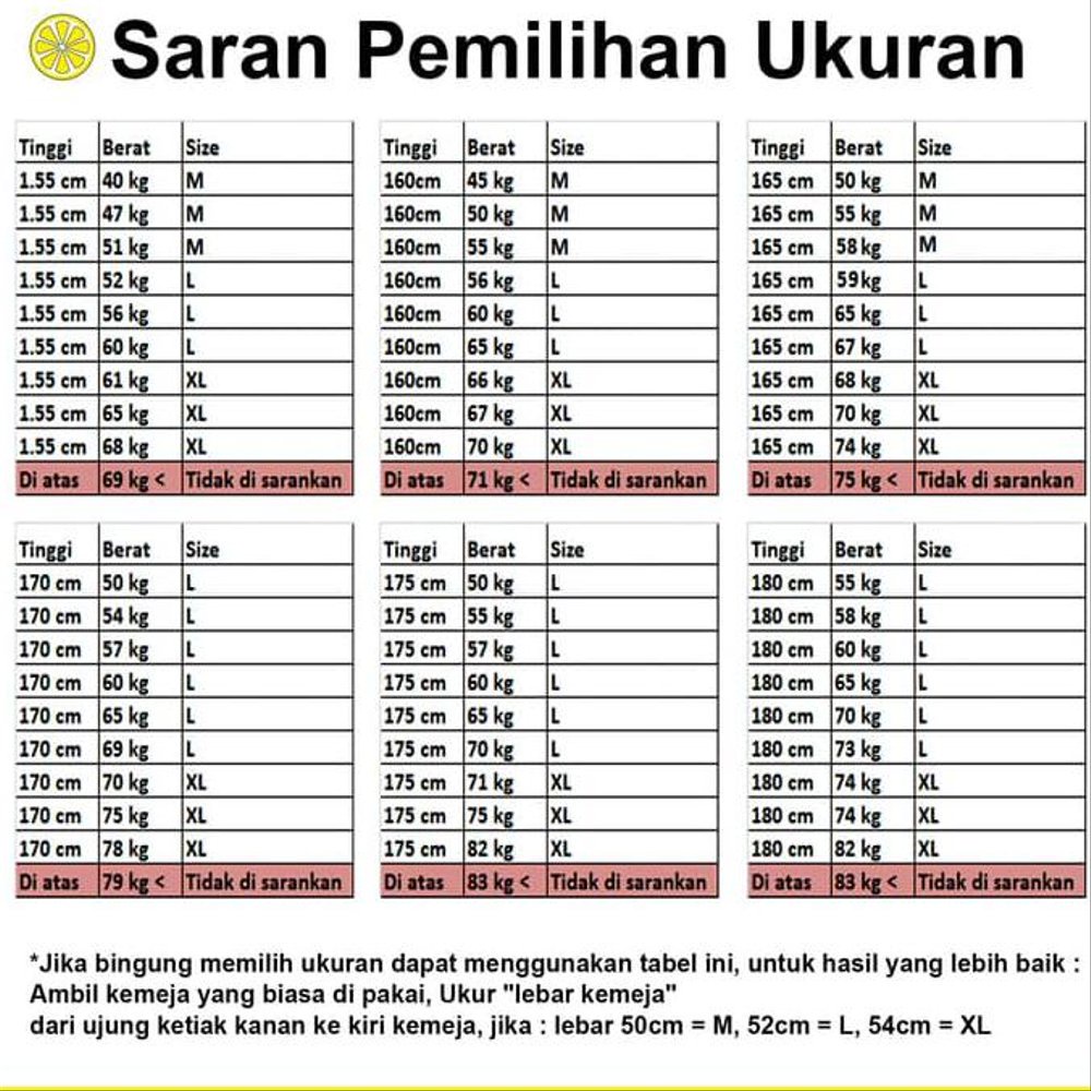 Ukuran extra size biasanya lebih besar 2cm dari ukuran dibawahnya.